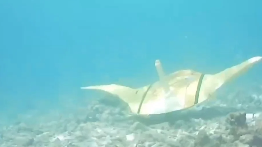 在能见度不足1米的幽暗水域,一个黑影正潜行其中,锁定“水下爆炸物”……它就是西北工业大学宁波研究院研制的“翱翔”V型仿生蝠鲼柔体潜水器。在水下,仿生蝠鲼正前方的前视声呐可穿透黑暗捕捉目标,两侧的侧扫声呐可同步扫描水底,并实时回传数据,快速勾勒出水下地形图,为前行扫清障碍。